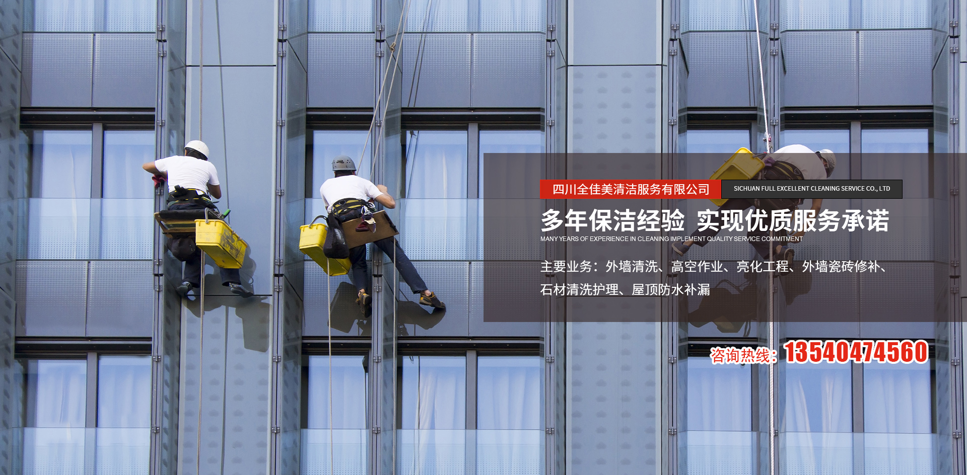 四川全佳美清潔服務有限公司成立于2017年11月20日,注冊資本200萬元人民幣,是一家專業(yè)從事高空外墻清洗,外墻維修,開荒保潔,石材養(yǎng)護,外墻防水等一體化的工程服務公司。公司先后服務于成都鐵路培訓學校,雙流空港酒店,省體育館等寫字樓及工業(yè)園區(qū)的外墻清洗保潔及維修服務。經過多年的發(fā)展與努力,公司已具備一定的規(guī)模及實力。現擁有一支技術精湛的服務團隊,以高標準的服務品質,專業(yè)的安全技術實力,為全川不同群體的客戶提供更安全,更周到的清洗服務解決方案,期待與你的合作。